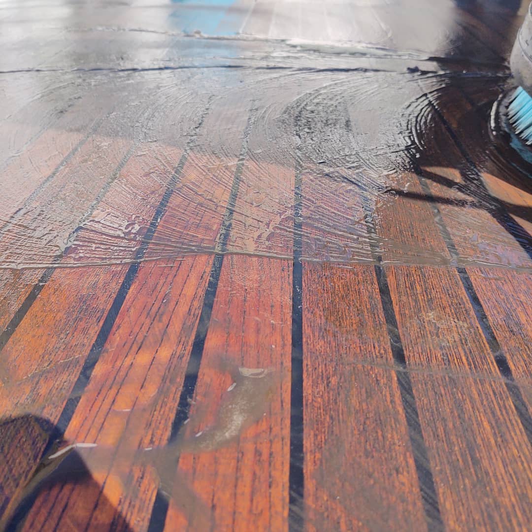 Effettuiamo la pulizia del Tek con l'ausilio dei nostri prodotti ecosostenibili della linea Mattchem abbinati alle monospazzole di ultima generazione.